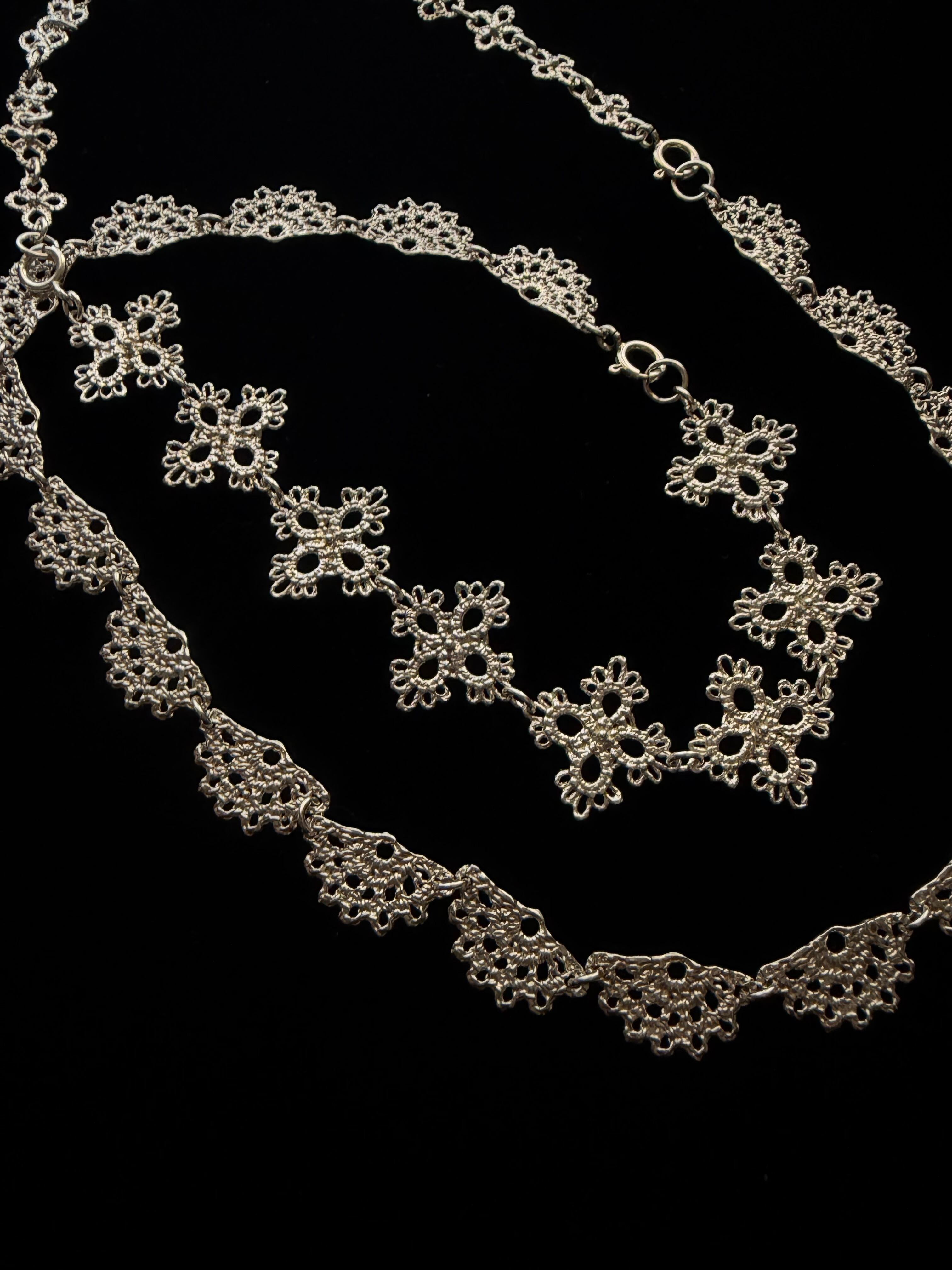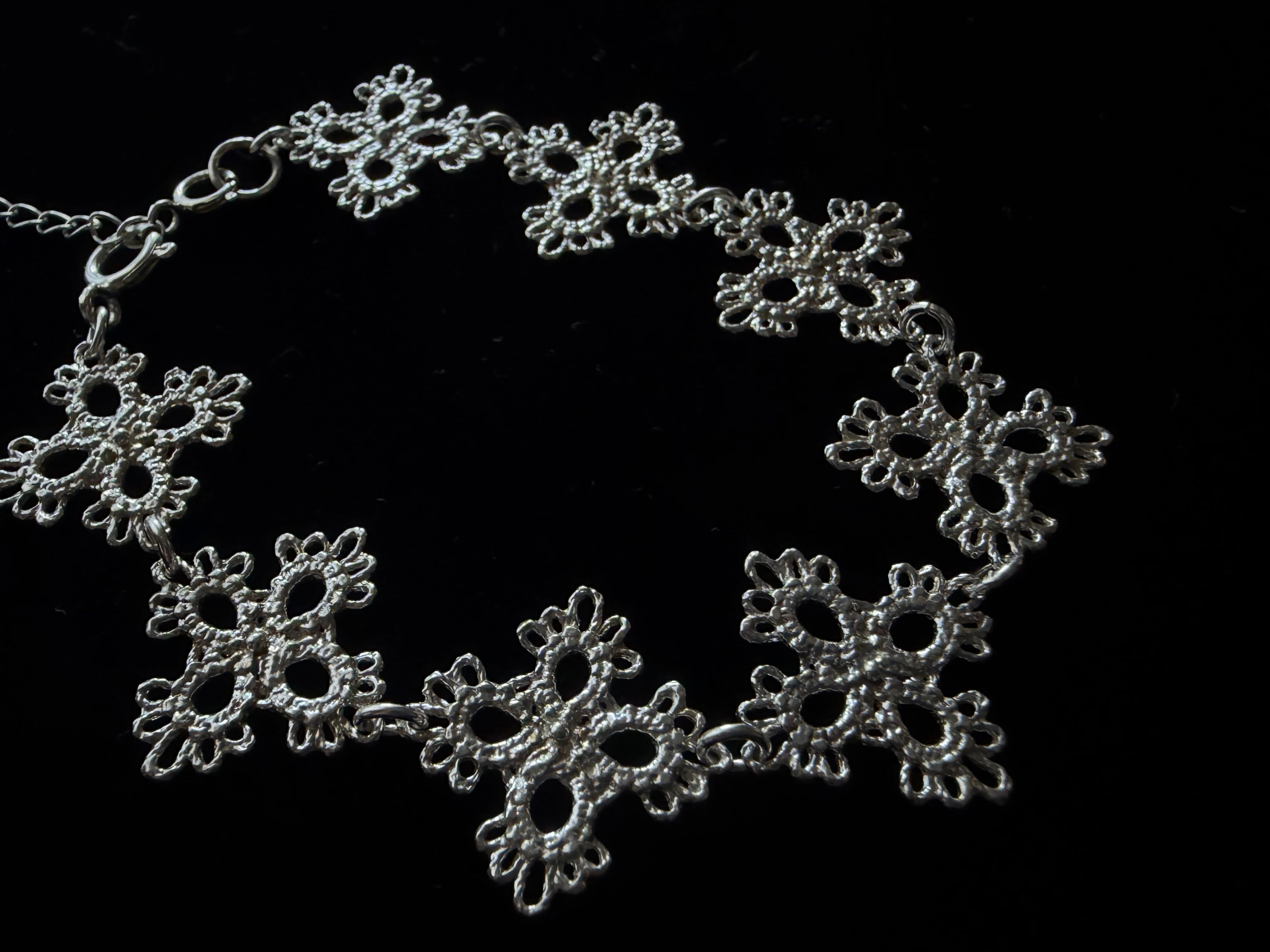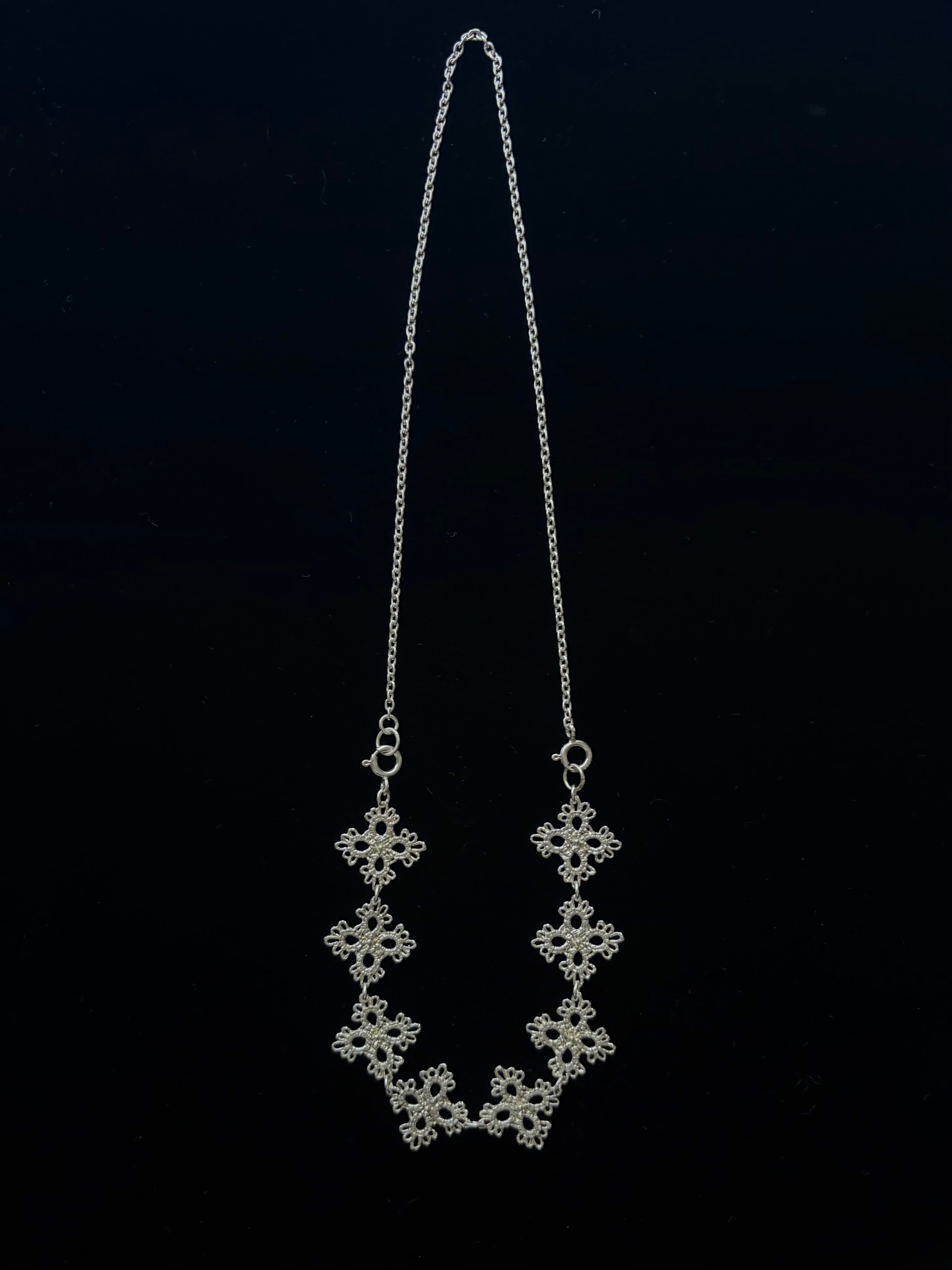 繊細なタティングレースを繋げた存在感のあるデザインです。