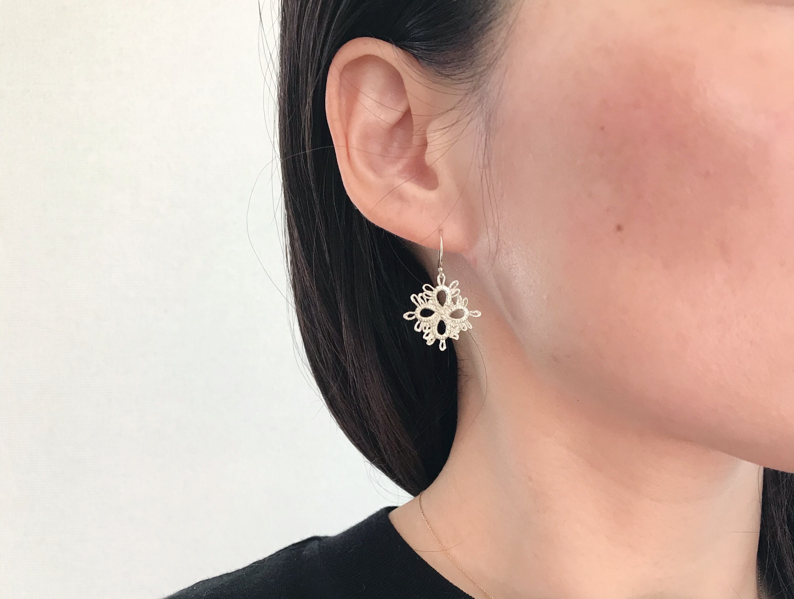 まるで手編みのレースを耳飾りにしたようですが実は金属
