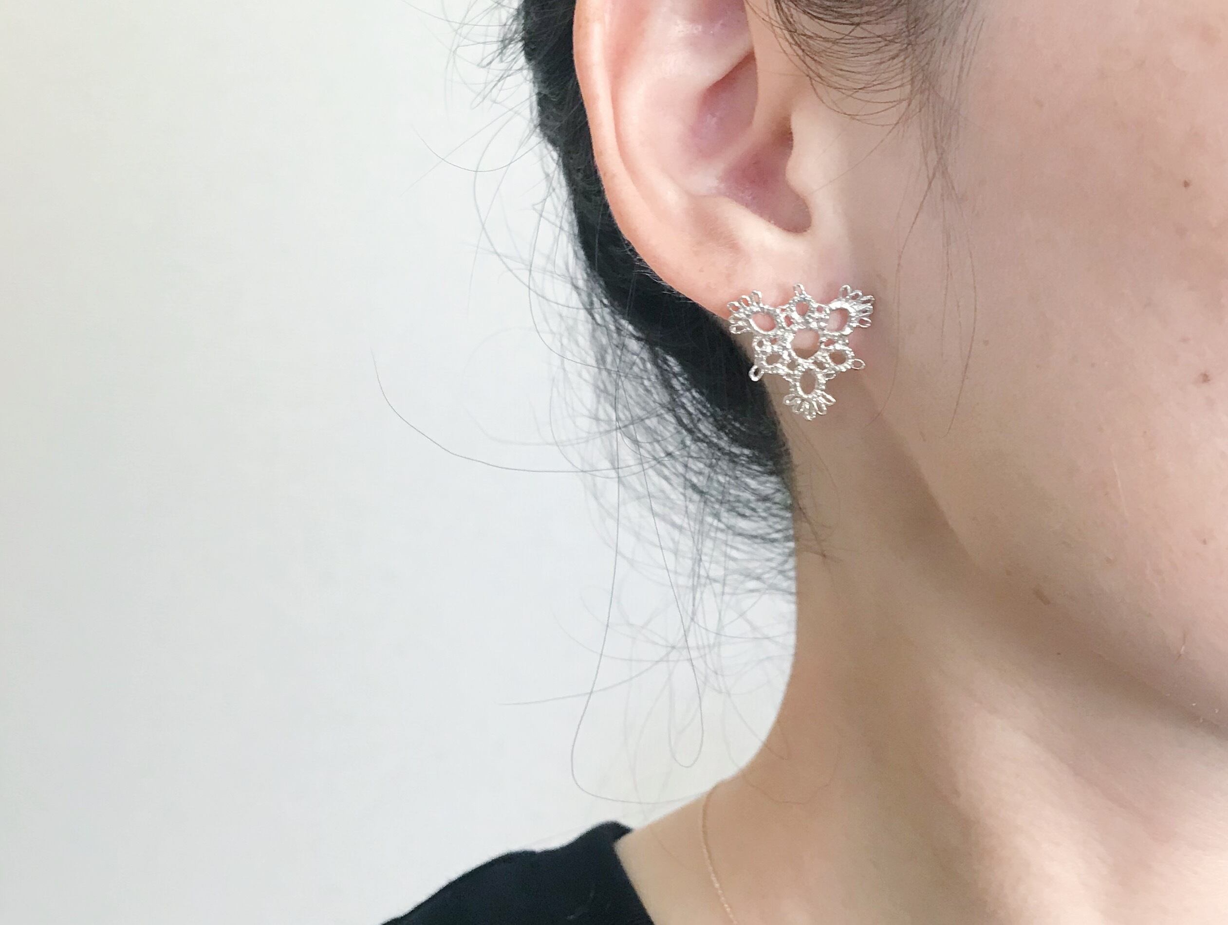 YulariceTatting lace pierced earring triangle SV925